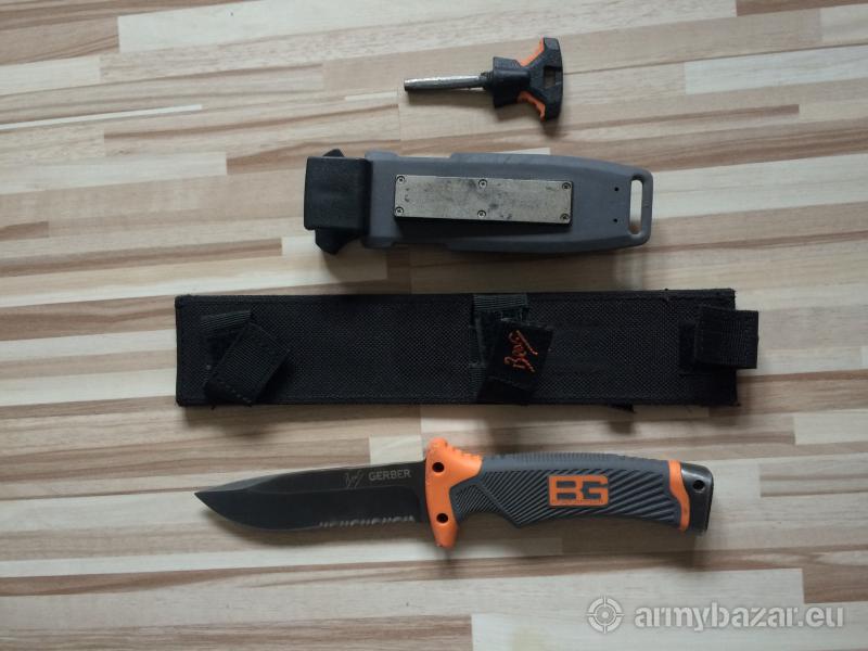 Popis: Malo používaný nůž značky Gerber s křesadlem a brouskem.