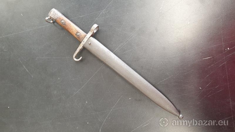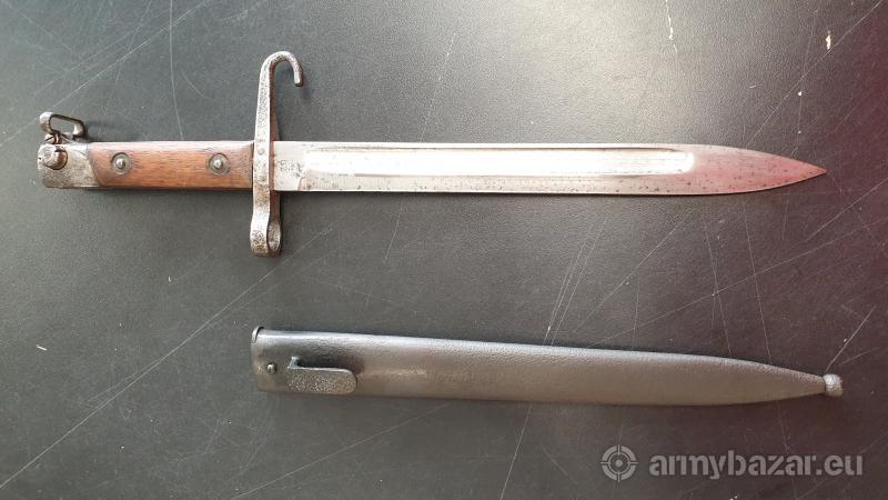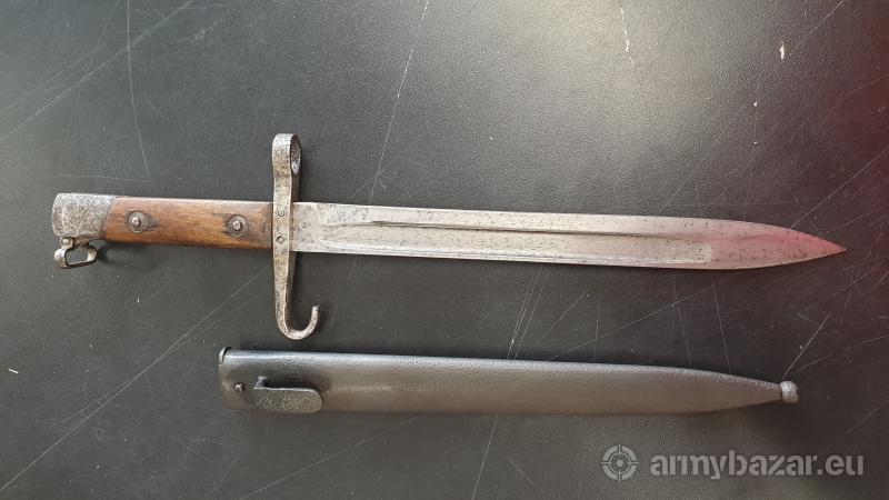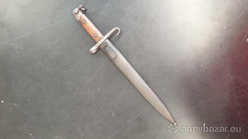 Popis: Prodám nožový bodák Mannlicher vzor 1895 včetně kovového pouzdra. Vyroben v Budapešťské zbrojovce FGGY. Značený, puncovaný, nijak neupravován, nebroušen, originální stav. Stav bodáku je dobrý.