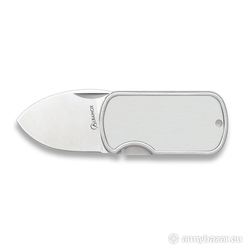 Popis: Originální nůž ve tvaru identifikační známky od španělské značky Albainox. Vlastnosti: • malý ale šikovný • zavřený má délku jen 6 cm Zakoupíte v obchodě Armik na adrese Tyršova 271, Žatec nebo online na https://armik.cz/nuz-albainox-dog-tag-na-klips-stribrny-18/. Možné je i vyzvednutí v nonstop fungujícím výdejním boxu ArmikBox nebo zaslání kamkoliv v ČR.