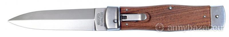 Popis: Nůž Mikov Predator Hammer - 3 PRODÁM NOVÝ nůž MIKOV Predator Hammer 241-ND-1/HAMMER. Precizně zpracovaný vyhazovací nůž Materiál čepele - nerezová ocel 420-55HRC Materiál střenky: dřevo Délka výrobku: 120 mm Délka čepele: 95 mm Šířka čepele: 23 mm Hmotnost výrobku: 140 g Včetně koženého pouzdra Původní cena 1900,-