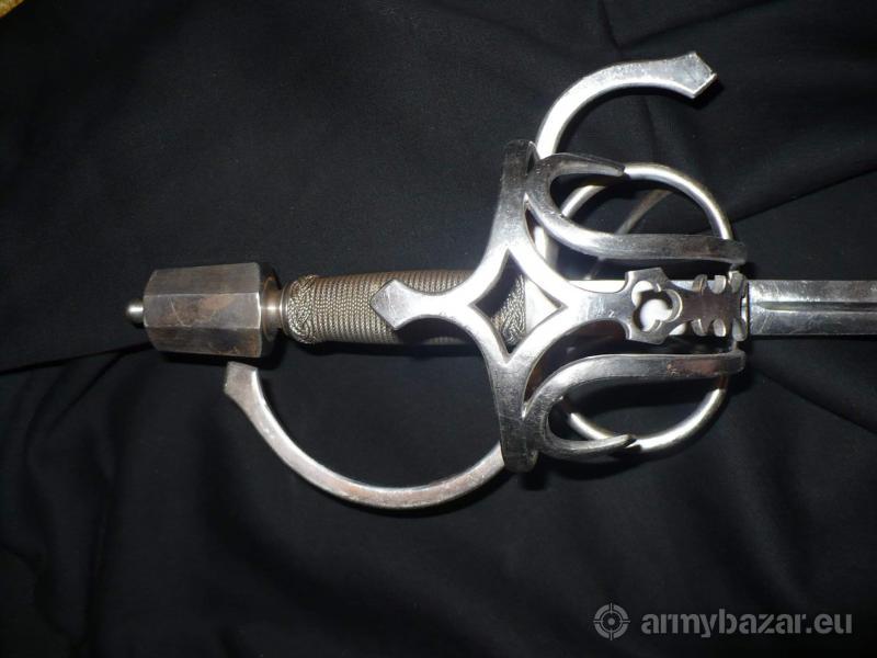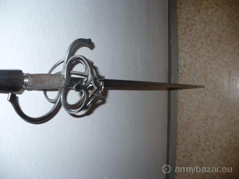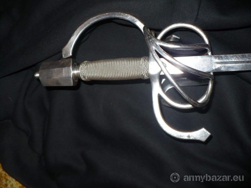 Popis: Zakázková výroba. Určen k historickému šermu, lehké opotřebení z používání. Čepel od "Hada" koš práce mistra jeťaka z Brna.