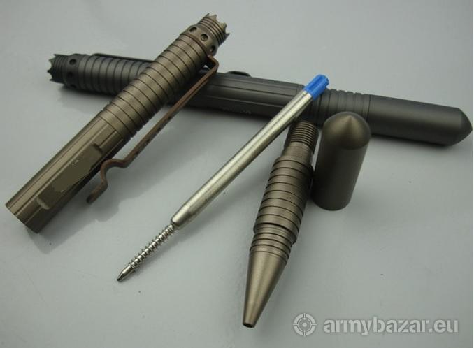 Popis: Taktické obranné hliníkové pero, celková délka 163 mm, mám barvu šedivou a khaki zlatou, pero je nové nepoužité zabalené. běžná cena 700,- Kč. inzerát platí do smazání.